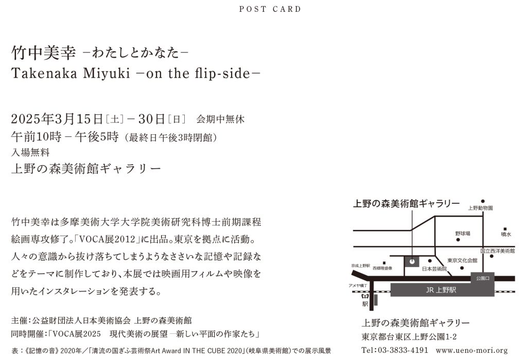 毎年VOCA展と同時開催で、VOCA展の過去出品作家の中から、注目するアーティストを選んで最新の制作を紹介しています。今回は2012年に出品した竹中美幸の個展を開催します。