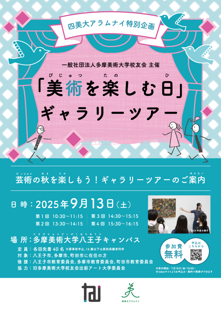 | 女子美術大学同窓会・多摩美術大学校友会・東京造形大学校友会・武蔵野美術大学校友会からなる四美大校友会同窓会連合です。 |