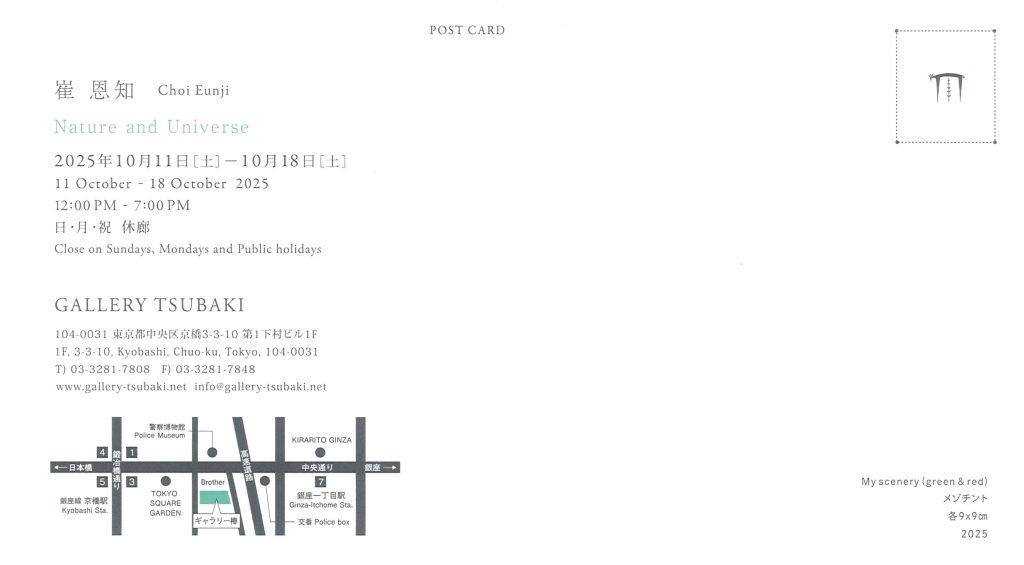 | 場所 | GALLERY TSUBAKI 東京都中央区京橋3-3-10 第1下村ビル1F |