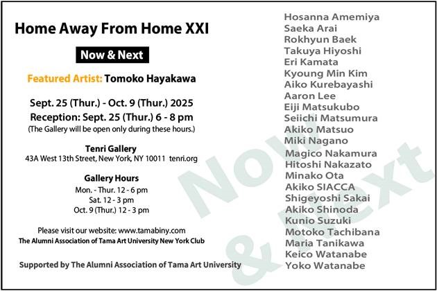 多摩美術大学校友会ニューヨーククラブは「ホーム・アウェイ・フロム・ホーム」という題目のもと、 2004年より年に一度展覧会を開催し、今年2025年度の年次展にて21周年を迎えます。